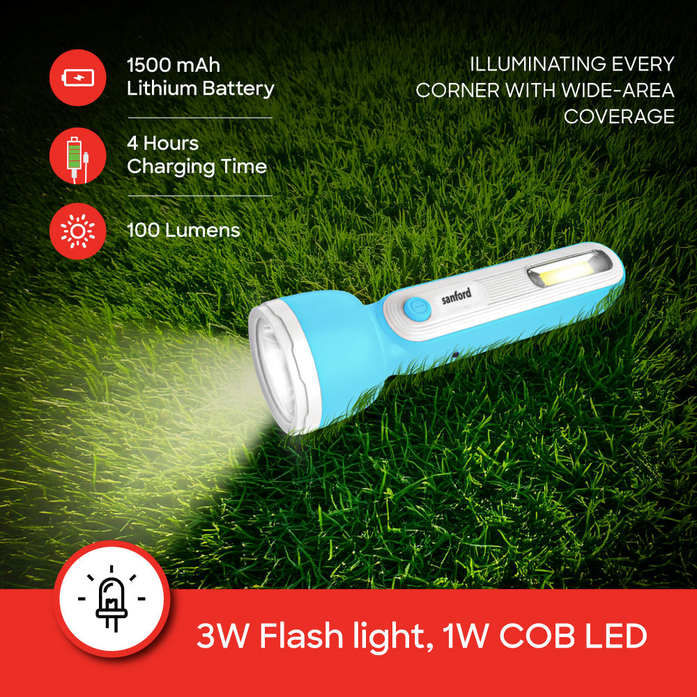 Sanford LED Flashlight Torch 3W Rechargeable USB COB LED 1500mAh Portable Lighting - SF2665SL
